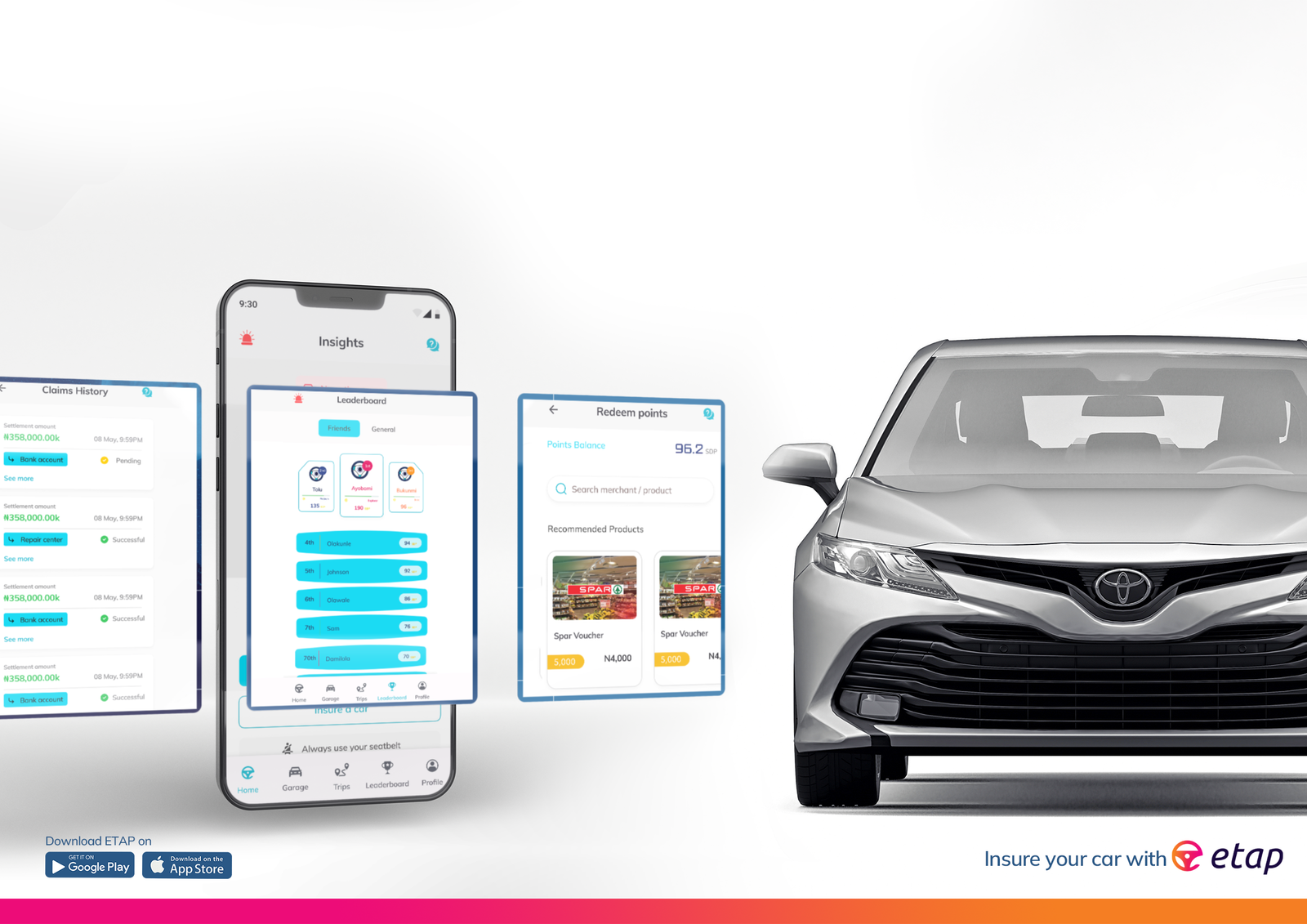 ETAP makes buying and claiming on car insurance as easy as taking a picture, using lightning-fast technology to unlock better experiences and fairer prices for drivers across Africa. Drivers have a range of daily, weekly, monthly and quarterly plans to choose from and the entire process of buying and claiming insurance in ETAP can be completed on a smartphone.