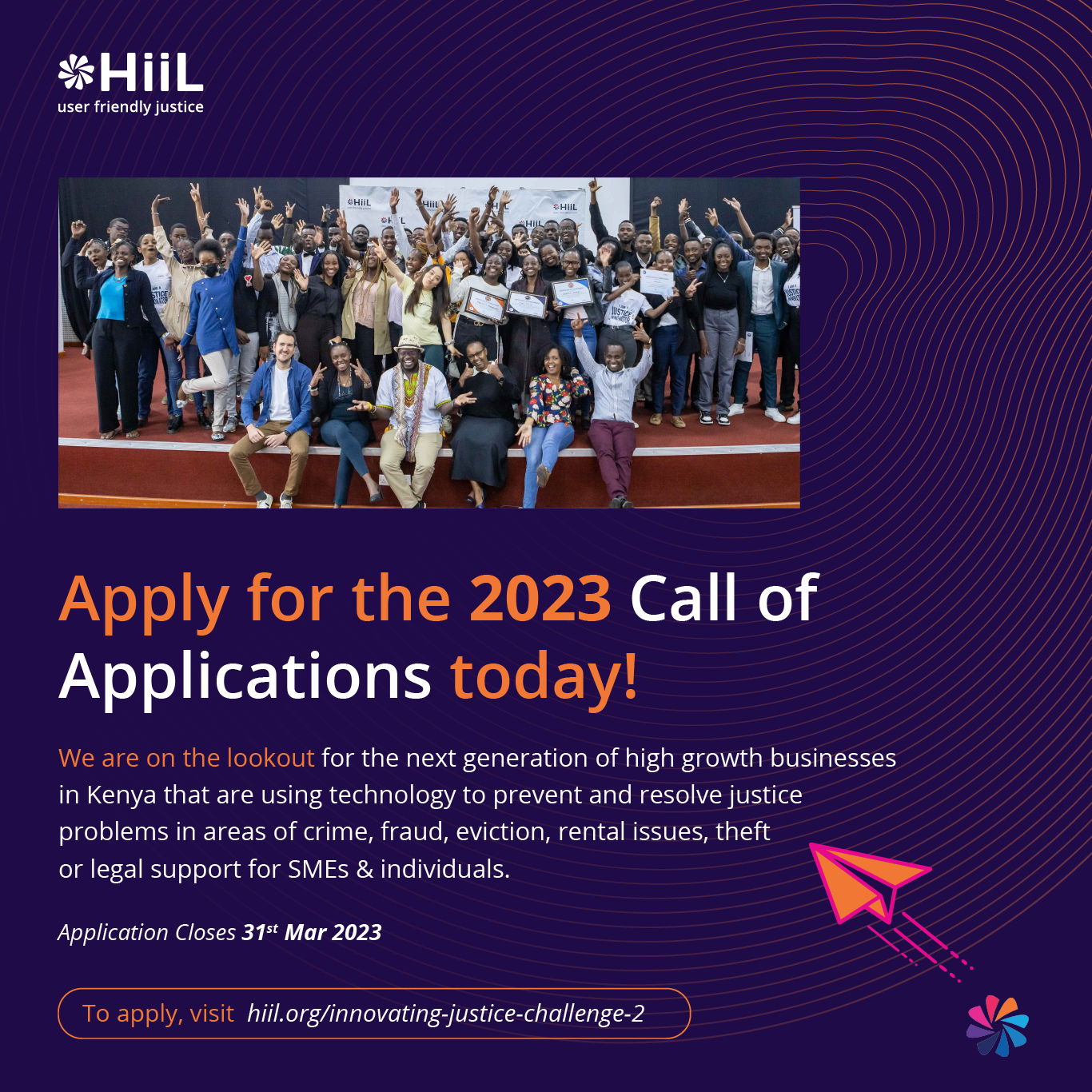 HiiL is looking for you! The HiiL Justice Accelerator aims to support entrepreneurs who are solving or preventing some of the biggest justice problems such as fraud, theft, tenancy & rental issues, access to basic financial services for the unbanked, access to legal and compliance services for MSMEs or individuals, family, land and employment disputes. HiiL will provide 8 startups from Kenya with an opportunity to take their startup to the next level.